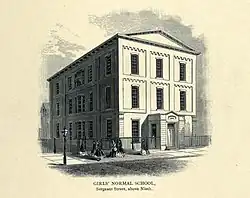 In 1848, the Girls' Normal School was established as the first secondary public school for women in Pennsylvania. It was also the first municipally supported teachers' school in the U.S. The first instructional session was held on February 1, 1848. By June 1848, there were 149 enrolled students, an incredibly large enrollment for a school at that time. The school continued to grow, forcing a move in 1854 to Sergeant Street between 9th and 10th Streets.