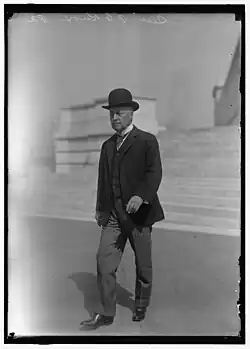 In February 1909, President-elect William Howard Taft nominated Senator Knox to be Secretary of State.[9] He was at first found to be constitutionally ineligible, because Congress had increased the salary for the post during his Senate term, thus violating the Ineligibility Clause.[10] In particular, Knox had been elected to serve the term from March 4, 1905 to March 3, 1911. During debate on legislation approved on February 26, 1907, as well as debate beginning on March 4, 1908, he had consistently supported pay raises for the Cabinet, which were eventually instituted for the 1908 fiscal calendar.[10][11] The discovery of the constitutional complication came as a surprise after President-elect Taft had announced his intention to nominate Knox.[10]