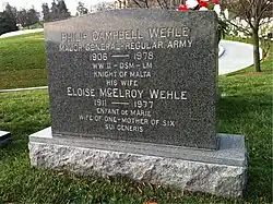 He was interred together with his wife Eloise McElroy Wehle (1911-1977) in Arlington National Cemetery.[7]
