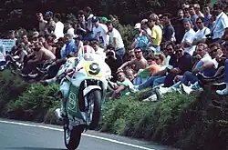 ![]() Phillip in 1992 on his Honda RC30 at Ballaugh Bridge. | |||||||||||||||