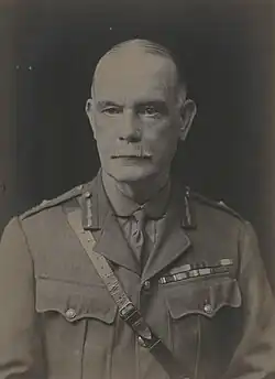 In the summer of 1918, 75th Division joined General Sir Edmund Allenby's final offensive (the Battles of Megiddo).[21] At the Battle of Sharon (19 September), 75th Division successfully assaulted Miske and the Turkish trench system around the village of Et Tire. For this attack Palin also had under his command 'A' Squadron (Duke of Lancaster's Own Yeomanry)[23] and 2nd Light Armoured Motor Battery, Machine Gun Corps, which he sent up with his chief of staff to outflank the village.[24] By 17.00, XXI Corps' attack had rolled up the whole Turkish right and allowed the Desert Mounted Corps to sweep forward to complete the envelopment of the Turkish army and begin the pursuit.[23]