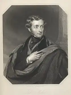 Stanhope entered Parliament in 1830, representing the rotten borough of Wootton Basset in Wiltshire until the seat was disenfranchised in 1832.[3] He was then re-elected to Parliament representing Hertford.[4] He served under Sir Robert Peel as Under-Secretary of State for Foreign Affairs between December 1834 and April 1835, and Secretary to the Board of Control in 1845, but though he remained in the House of Commons till 1852, he made no special mark in politics.[5]