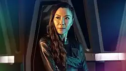Philippa Georgiou is a fictional character appearing in the Star Trek franchise portrayed by Michelle Yeoh. First appearing in "The Vulcan Hello", the pilot episode of Star Trek: Discovery, Yeoh features as a major member of the recurring cast during the first three seasons of the series, and is credited in the main titles as a "special guest star" during each of the episodes she appears in. The character is introduced as Captain Philippa Georgiou, the respected captain of the USS Shenzhou and a maternal figure to series protagonist Michael Burnham (played by Sonequa Martin-Green). Beginning in "The Wolf Inside", the eleventh episode of the show's first season, Yeoh portrays an alternate version of Georgiou from the Mirror Universe, Terran Empress Philippa Georgiou Augustus Iaponius Centarius, a despotic and ruthless emperor of the Terran Empire. The character makes her final appearance of the series in "Terra Firma", the two-part ninth and tenth episodes of Discovery season three. Yeoh reprised the role in the 2025 film Star Trek: Section 31.[1]