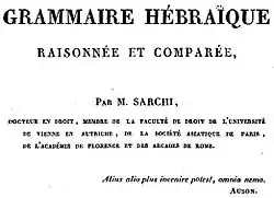 François Philippe Sarchi originally Samuel Morpurgo, born in Gradisca d'Isonzo, Habsburg monarchy, Holy Roman Empire in 1764 and died in Paris in 1830, was a lawyer, linguist, philologist of Illyrian origin, specializing in Italian and Hebrew.