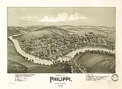 Philippi ('FILL-uh-pea') is a city in and the county seat of Barbour County, West Virginia, United States, along the Tygart Valley River.[5] The population was 2,929 at the 2020 census.[2] In 1861, the city was the site of the Battle of Philippi, known as the "Philippi Races". Although a minor skirmish, this is considered the earliest notable land action of the American Civil War. The city has a weekly newspaper, The Barbour Democrat.