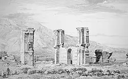 Although the site was briefly noted by earlier travellers, first modern archaeological description, based on a visit in 1856, was published in 1860 by Georges Perrot.[10] This was followed by the more extensive investigations of the French Mission Archéologique de Macédoine in 1861, led by the archaeologist Léon Heuzey and the architect Honoré Daumet.[11] Excavations by the École française d'Athènes began in the summer of 1914, were renewed in 1920 after an interruption caused by the First World War, and continued until 1937.[12] During this time the Greek theatre, the forum, Basilicas A and B, the baths, and the walls were excavated. After the Second World War, Greek archaeologists returned to the site. From 1958 to 1978, the Archaeological Society of Athens, followed by the Greek Archaeological Service and the University of Thessalonica, uncovered the bishop's quarter and the octagonal church, large private residences, a new basilica near the Museum, and two others in the necropolis east of the city.