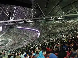 The arena serves multiple purposes, hosting major church gatherings of the Iglesia ni Cristo (INC) and functioning as a versatile sports and concert venue. It accommodates various events, including boxing, basketball, and live music performances, but not association football or field events due to its limited size. For field events, the adjacent Philippine Sports Stadium, also owned by the Iglesia ni Cristo, is used. Every seat in the arena offers a clear line of sight, even with different configurations such as church ceremonies, boxing matches, tennis, concerts, or indoor gymnastics. The INC allows non-Iglesia tenants to use the arena but reserves the right to prohibit activities that violate its religious principles, such as gambling-related events and cockfighting.[17][24][25]