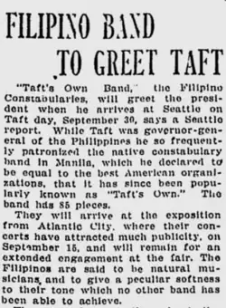 - ^ a b c "Hearty Cheers for Philippine Band" (PDF). The New York Times. March 8, 1909. Retrieved September 9, 2015.