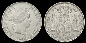 - ^ "50 Centavos Peso from 1880 - SPAIN 1874-85 - ALFONSO XII - Philippines - The Coin Database". www.coindatabase.com. Retrieved 2018-11-05.
