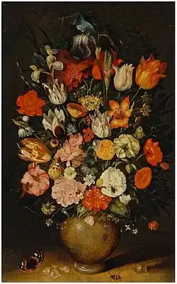 Only a few signed works of him exist and on the basis of these works some more works are attributed to him. He was a still life painter, in particular of flower pieces often including insects.[2] As in the work of other Antwerp painters of his generation such as Jan Brueghel the Younger, some of his flower paintings were dedicated to the presentation of a single variety of flowers.[3]