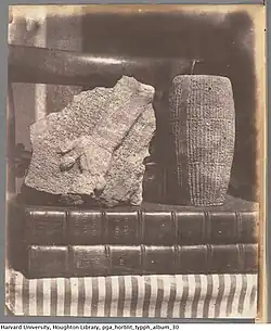 In 1850, at a meeting of the Cambrian Archaeological society (Cymdeithas Hynafiaethau Cymru), Phillips announced that he was seeking to locate his large collection at a location in Wales. He employed a distant relative by marriage, Amelia Elizabeth Guppy, to photograph some of his collection in 1853 including artefacts from Babylon and Utrecht.[11]
