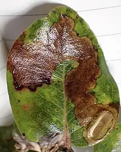 The larvae feed on Metrosideros species, including M. polymorpha. They mine the leaves of their host plant.