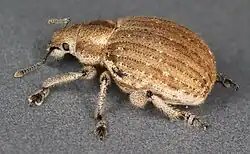 Philopedon plagiatum (sometimes Philopedon plagiatus), the marram weevil, is a species of broad-nosed weevil in the beetle family Curculionidae.[1][2][3][4] It originates in Western Europe,[5][6] with a distribution which includes Portugal, Spain, France, Ireland, Great Britain, Belgium, the Netherlands, Germany, Denmark, Norway, Sweden, Finland, Estonia, Latvia, Lithuania, Poland, Czech Republic, Slovakia, Russia, Ukraine, Hungary, Greece, Switzerland and Italy.[7] It has been introduced into North America, first recorded in 1940.[8] It is now established in the Maritime Region of Canada and the northeastern United States.[1]