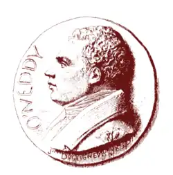 Philothée O'Neddy (1811, Paris -1875, Paris), born Théophile Auguste Marie Dondey de Santeny, was a French poet. He was an associate of the Romantic movement, and one of the original "Bohemians". He is known for his 1831 collection Feu et flamme. He also wrote fiction, such as Histoire d'un anneau enchanté (1842).