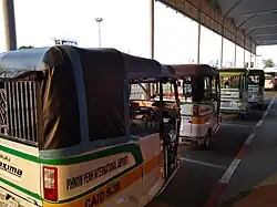 There are a few options to transfer to or from Phnom Penh International Airport and the city. Outside the arrival hall, passengers can take a taxi provided by the Airport Taxi Association or book a ride from Grab, a ride-hailing app. In April 2018, trains operated by Royal Railway Cambodia began running express from Phnom Penh International Airport (parking area) to Phnom Penh railway station (City Center). Trains run every 30 minutes and the journey takes roughly 30 minutes, fare of one-way is US$2.50.[82] There is also the city bus and an airport express bus.[83]