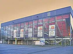The home arena "Ischelandhalle" has a capacity of 1,800. The minimum capacity requirement for the BBL is 3,000.[3] A refurbishment and enlargement to a capacity of 3,000 of the current building is planned for the 2009–10 season.[4] Therefore, an alternative location is required for that period. Three options were considered by Phoenix Hagen: a tent solution in Hagen with a capacity of 3,500,[5] an alternative gym in Hagen or a location near Hagen. On 23 April 2009 the BBL refused the application of Phoenix Hagen for a license to play in the BBL.[6] In the application the tent solution was proposed, which has been the reason for the rejection.[7] Within a week after the rejection Phoenix Hagen had the right to appeal against the decision. Phoenix Hagen evaluated the feasibility of converting a building, which is located in Hagen and is currently hosting badminton and tennis courts. As an alternative solution outside of Hagen, the gym "Uni Sporthalle" of the University of Wuppertal was considered. The appeal to the BBL was staged with the plans and contracts for the Hagen solution. On Tuesday 02/05/09 the responsible board of the BBL decided to send a delegation to the proposed location in Hagen to inspect the site before making a final decision on the licence.[8] On Friday 08/05/09 the BBL canceled their previous decision and granted a licence with resolutive condition.[9] Phoenix Hagen is eligible to maintain the licence, if progress requirements for the setup of the basketball arena will be fulfilled. The temporary arena is planned to have a capacity of 3,035.[10] On Monday 06/07/09 the BBL announced that Phoenix Hagen has fulfilled the requirements regarding its economic performance.[11] Phoenix Hagen will have to present the arena converted and ready for match operation by 31 July 2009, which forms the final hurdle towards the 2009–10 BBL licence. In the 08/05/09 press release the BBL already stated that it expects Phoenix Hagen also to meet these requirements.
