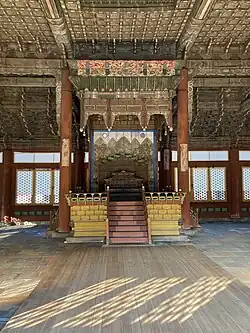 ![]() The central feature of Geunjeongjeon in Gyeongbokgung is the elevated Phoenix throne. | |