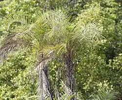 Phoenix paludosa (paludosa, Latin, swampy), also called the mangrove date palm,[2] is a species of flowering plant in the palm family, indigenous to coastal regions of India, Bangladesh, Myanmar, Thailand, Cambodia, Sumatra, Vietnam and peninsular Malaysia.[3] They are also known as sea dates.[4] The trees grow in clusters, to 5 m high, usually forming dense thickets. The leaves are 2 to 3 m long and recurved.[5] Similar to Nypa leaves, but smaller and placed towards the plant's top.