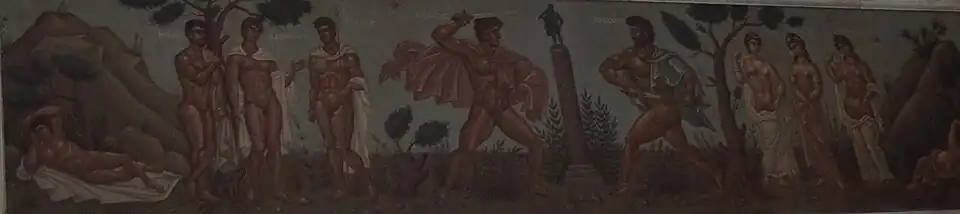 Kontoglou was a particularly productive artist. A devout Orthodox Christian, he undertook the restoration of the frescos of the Perivleptos church in Mystras which, along with the Cretan icon painters in the years after the fall of Constantinople (1453), he considered to be the very best of the Iconographers' work and a model for his own work.[2] Furthermore, he painted frescos in various churches all around Greece; among them the Kapnikarea church in Athens. He also painted the monumental fresco of the Ecumenical Patriarchs of Constantinople at the town hall of Athens and frescoes for Zoodochos Peghi at Liopesi (Paiania), the Church of Saint Andrew off Patission Street in Athens, the Metropolitan Church of Evangelismos in Rhodes and the Church of Saint George at Stemnitsa in Arcadia. Churches in Athens frescoes by Kontoglou include Saint George at Kypseli, Saint Haralambos in the park Pedion tou Areos and Saint Nicholas at Kato Patissia.[3] Kontoglou was also the original iconographer of the main iconography at the Greek Orthodox Church of the Holy Trinity in Charleston, South Carolina.[4][5]