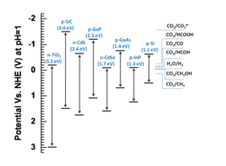 - ^ Halmann, M. (1978). "Photoelectrochemical reduction of aqueous carbon dioxide on p-type gallium phosphide in liquid junction solar cells". Nature. 275 (5676): 115–116. Bibcode:1978Natur.275..115H. doi:10.1038/275115a0. S2CID 4257841.