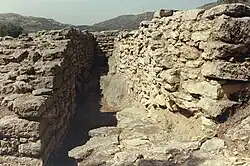 Phourni (Greek: Φουρνί, also Fourni) is the archaeological site of an ancient Minoan cemetery in Crete, established in 2400 BC and lasted until 1200 BC. Phourni is Greek for "furnace, oven" and the name of the hill on which the cemetery is located. Phourni is located at 70100 Epano Archanes, Heraklion, Greece—located on a hill in north-central Crete.[1] Phourni can be seen from Mount Juktas. It is a small hill situated northwest of Archanes, between Archanes and Kato Archanes. Phourni is reachable from a signed scenic path that starts at Archanes. It was an important site for Minoan burials.[1] The burials consistently and proactively engaged the community of the Minoans. The largest cemetery in the Archanes area was discovered in 1957 and excavated for 25 years by Yiannis Sakellarakis, beginning in 1965.[2] The 6600 sq m cemetery includes 26 funerary buildings of varying shapes and sizes.[2] The necropolis of Phourni is of primary importance, both for the duration of its use and for the variety of its funerary monuments. All the pottery and much of the skeletal material was collected, unlike many other pre-palatial tombs. The cemetery was founded in the Ancient Minoan IIA, and continued to be used until the end of the Bronze Age. The occupation reached its peak during the Middle Minoan AI, just before the palaces of Knossos and Malia appeared. The proximity of Archanes to the important religious centres of Mount Iuktas probably contributed to the prominence of the site. [3]