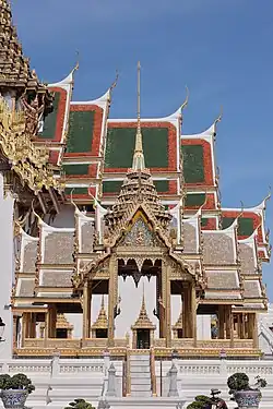 The Phra Thinang Amarin Winitchai Mahaisuraya Phiman (พระที่นั่งอมรินทรวินิจฉัยมไหสูรยพิมาน) or, in brief, the Phra Thinang Amarin Winitchai (พระที่นั่งอมรินทรวินิจฉัย) is the northernmost and forward building of the Maha Monthien buildings, It is also perhaps the most important. The throne hall was constructed in Thai style as a royal audience chamber, for receiving foreign ambassadors and for conducting important state businesses and ceremonies.[33][34]