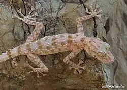 The Phyllodactylidae are a family of geckos (Gekkota) consisting of 163 species in 10 genera,[1] distributed throughout the New World, North Africa, Europe and the Middle East. The family was first delineated based on a molecular phylogenetic analysis in 2008, and all members possess a unique single codon deletion in the phosducin (PDC) gene.[2] The phyllodactylid genus Bogertia has been recently synonymized with Phyllopezus.[3] The name of the family comes from the leaf shaped fingers.