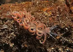 - ^ a b Rudman W.B. (June 28, 2008). "The anatomy and biology of alcyonarian-feeding aeolid opisthobranch mollusks and their development of symbiosis with zooxanthellae". Zoological Journal of the Linnean Society. 72 (3): 219–262. doi:10.1111/j.1096-3642.1981.tb01571.x.