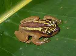 Phytotriades is a genus of tree frogs in the family Hylidae.[3][4] As currently delimited, the genus is monotypic and contains Phytotriades auratus,[3] commonly known as the golden tree frog,[2][5] bromeliad-dwelling treefrog,[6] El Tucuche golden tree frog, or Trinidad heart-tongued frog.[7]
