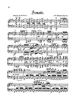Johann Nepomuk Hummel's Piano Sonata No. 5 in F-sharp minor, Op. 81 was written and published in 1819.[1] The work is written in a proto-Romantic style that anticipates the later stylistic developments of composers such as Frédéric Chopin, Franz Liszt, Robert Schumann, Charles-Valentin Alkan, Felix Mendelssohn, and Johannes Brahms.