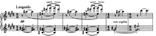 13–46 | A second theme follows at m. 13, marked languido.[nb 6] | |