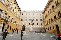 The Piazza Salimbeni is a prominent square in central Siena, Region of Tuscany, Italy. It is notable for still housing the offices of one of the first banking houses in Europe, the Banca Monte dei Paschi di Siena.[1] It is surrounded clockwise starting from north by the following palaces: