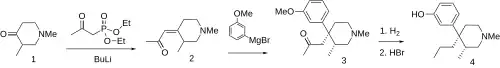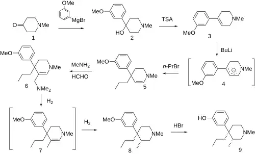 - ^ Martinelli MJ, Peterson BC (1990). "A concise, stereoselective synthesis of picenadol". Tetrahedron Letters. 31 (38): 5401–5404. doi:10.1016/S0040-4039(00)97857-2.