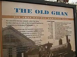 - ^ "Afghan Express Train Service Information". Pichi Richi Railway Preservation Society Inc. Archived from the original on 9 April 2010. Retrieved 1 February 2010.
