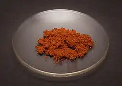 Picramic acid, also known as 2-amino-4,6-dinitrophenol,[3] is an acid obtained by neutralizing an alcoholic solution of picric acid with ammonium hydroxide. Hydrogen sulfide is then added to the resulting solution, which turns red, yielding sulfur and red crystals. These are the ammonium salts of picramic acid, from which it can be extracted using acetic acid.[4] Picramic acid is explosive and very toxic. It has a bitter taste.[5]