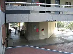 Much of the school is made of concrete with fake brick layers. Only a few buildings — such as the science and P.E. buildings — are completely indoors. The main building has open hallways. Most hallways and many classroom have views of the Bay.