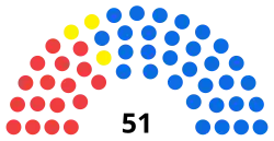 The Regional Council of Piedmont is composed of 51 members, of which 49 are elected in provincial constituencies with proportional representation, one is for the candidate for President who comes second, who usually becomes the leader of the opposition in the Council, and one is for the elected President.