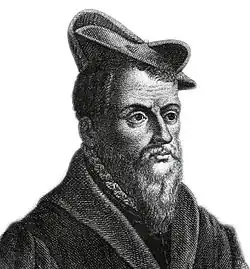 Belon was born in 1517 at the hamlet of Souletière near Cérans-Foulletourte in the Pays de la Loire.[2] Nothing is known about his descent. Somewhere between 1532 and 1535 he started working as an apprentice to René des Prez, born in Foulletourte but by then an apothecary to the bishop of Clermont, Guillaume Duprat.[3] Between 1535 and 1538[4] he entered the service of René du Bellay, bishop of Le Mans, who allowed him to study medicine at the University of Wittenberg with the botanist Valerius Cordus (1515-1544). He travelled around Germany with Cordus in 1542, and on his return, he travelled through Flanders and to England.[5] By the end of summer in 1542 he continued his studies at Paris. With the recommendation of Duprat, he became an apothecary to Cardinal François de Tournon. Under this patronage, he was able to undertake extensive scientific voyages. Starting in December 1546, he travelled through Greece, Crete, Asia Minor, Egypt, Arabia and Palestine, and returned to France in 1549. A full account of his Observations on this journey, with illustrations, was published in Paris, 1553. Returning to the household of Cardinal de Tournon at Rome for the Papal conclave, 1549-1550, Belon encountered the naturalists Guillaume Rondelet and Hippolyte Salviani. He returned to Paris with his copious notes and began to publish. In 1557 he travelled again, this time in northern Italy, Savoy, the Dauphiné and Auvergne.[1][2]