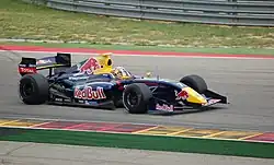 For 2013, Gasly moved to Tech 1 Racing.[25] He took five podiums, as well as victories at Moscow, the Hungaroring and Le Castellet.[20][26] He held an eleven-point lead over Oliver Rowland into the final meeting at Circuit de Barcelona-Catalunya, and ultimately clinched the title with third and sixth-place finishes; the latter result coming after a collision with Rowland, who received a drive-through penalty as a result.[27]