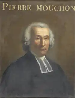 Mouchon was born on 30 July 1733 in Geneva, Republic of Geneva, the son of Etienne Mouchon, a watchmaker, and Jacquemine De Thou.[1] He studied theology in Geneva from 1754 to 1758.[1] Mouchon served as regent (1759–1766) and principal (1791–1797) of the Collège de Genève, and was secretary of the Company of Pastors from 1788 to 1789.[1] He was the pastor of the French Church of Basel from 1766 until his return to Geneva in 1778, where he ministered until his death.[1] Keen on mathematics and astronomy, known to Jean-Jacques Rousseau, Mouchon undertook from 1774 to 1775, the development of what would become the Table analytique et raisonnée des matières contenues dans les XXXIII volumes in-folio du Dictionnaire des sciences, des arts et des métiers[2] published in two volumes in 1780, in Paris by Charles-Joseph Panckoucke and in Amsterdam, by Marc-Michel Rey, the two co publishers of the Supplément à l'Encyclopédie.