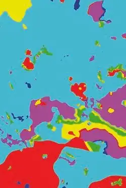 Wardle was perhaps the first British painter to experiment artistically with the ideas of Benoit Mandelbrot and other 'chaos' mathematicians, exploring in his work how 'the complexity associated with natural and organic forms can be generated, in appearance at least, by simple rules' (from Piers Wardle's catalogue for an exhibition held at the Pomeroy Purdy Gallery in April 1989). An interest in chaos and fractals is present throughout Wardle's work as is a love of found objects especially sweet wrappers, packaging and signage. He would go on to explore the artistic potential of computer-generated chaotic patterns.
