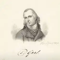 Pieter Gaal (19 July 1769 in Middelburg – 13/18 January 1819 in Middelburg)[1] was a Dutch painter, the son of Thomas Gaal. Gaal came from a family of painters from the Zeeland area of the Netherlands, his earliest ancestor was a knight called Florens Ghale van Hoesbroec, though his father was born in what is now Belgium. His son Jacobus Cornelis Gaal was also a painter, painting portraits such as "Junges Madchen in Weissen Kleid Beim Einkleid" a portrait of a young woman being dressed by a maidservant. Gaal's main focus were "landscapes with cattle and figures furnished, a hobby portraits, living and dead game and genre pieces". He spent time in London (1789–1791), studied in Paris (at the Académie des Beaux-Arts de l'Institut de France in 1791), and traveled to paint in Italy, Switzerland and Germany.[1]