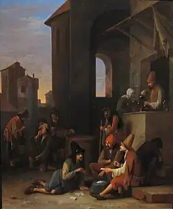 He is known mostly for genre paintings of Dutch and Italian village life.[1] He moved in the 1670s to Hulst where he became a brewer.[1]