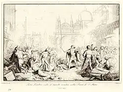 Pietro Loredan was born in 1372, in the parish of St. Canciano in Venice. He was a scion of a veritable dynasty of admirals: his father Alvise Loredan and grandfather, and later his son Giacomo and nephew Alvise, were all distinguished naval commanders in the service of the Republic of Venice. His father was further distinguished by being elected to the highly prestigious position of Procurator of St Mark's. His mother, Joan, appears to have been from a wealthy family.[1] Pietro Loredan married at a young age, probably in 1395, to Campagnola Vitale Lando di Pietro. Some historians report a second marriage, to a Foscolo, in 1422, but as Campagnola survived her husband and is still mentioned in his will, this is evidently erroneous.[1]