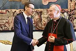 Pietro Parolin OMRI (Italian: [ˈpjɛːtro paroˈlin], Venetian: [paɾoˈliŋ]; born 17 January 1955) is an Italian Catholic prelate who has served as the Vatican's Secretary of State since 2013, and has served as a member of the Council of Cardinals since 2014, the same year he was made a cardinal.