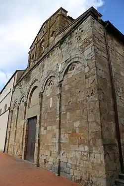 The Pieve di San Verano is a Roman Catholic, Romanesque-style, formerly-rural parish church now located in on Piazza Popolo #1 in the historic center of Peccioli, province of Pisa, region of Tuscany, Italy. The church is dedicated to Veranus of Cavaillon.