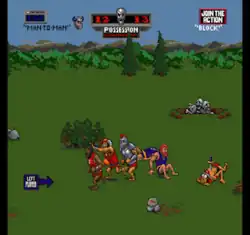 Pigskin 621 A.D. is an arcade game released in 1990 by Midway Manufacturing under the "Bally Midway" label.[1] One player can battle the computer, or two players can battle head-to-head. Two teams compete to score as many touchdowns as possible in the tradition of American football, but actual play is more similar to rugby football.