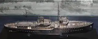 On the aft superstructure, on both sides of the funnel, there were a motorboat (on the starboard side) and a wooden lifeboat (on the port side).[1]