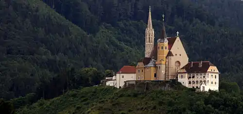 The Pilgrimage Church Maria Straßengel (German: Wallfahrtskirche Maria Straßengel) is a fourteenth century Gothic church located on a hill overlooking the market town of Judendorf-Straßengel in the district of Graz-Umgebung, a few kilometres northwest of Graz, Austria on the right bank of the Mur river.[1] The town was first mentioned in the year AD 860 as Strazinolum.[1]