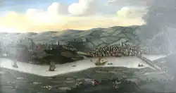 It was once separated from the adjacent town of Barnstaple by the River Yeo.[3] Sir John Stowford (born c.1290[4] died c.1372[5]) of Stowford, West Down. Chief Baron of the Exchequer[6] built Pilton Causeway which links the town of Barnstaple and village of Pilton, which were then separated by the treacherous marshy ground in which flowed the tidal meanders of the small River Yeo. It is recounted by John Prince (1643–1723), that Stowford decided on building the causeway when on his way from his home at Stowford, north of Pilton, to Barnstaple, he met whilst fording the Yeo the drowned bodies of a woman with her child.[7] He is also believed to have contributed to the financing of the long-bridge in Barnstaple.[8]